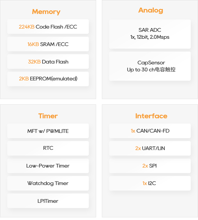 CVM012x系列电容触控型产品是曦华科技推出的CVM01平台中的基于ARM Cortex-M0+内核的32位通用车规级MCU,集成了大容量的Flash存储器、SRAM存储器和丰富的外设资源,集成高达30ch通道的自电容检测,且支持15*15ch通道互电容检测,具有卓越的性能和性价比。