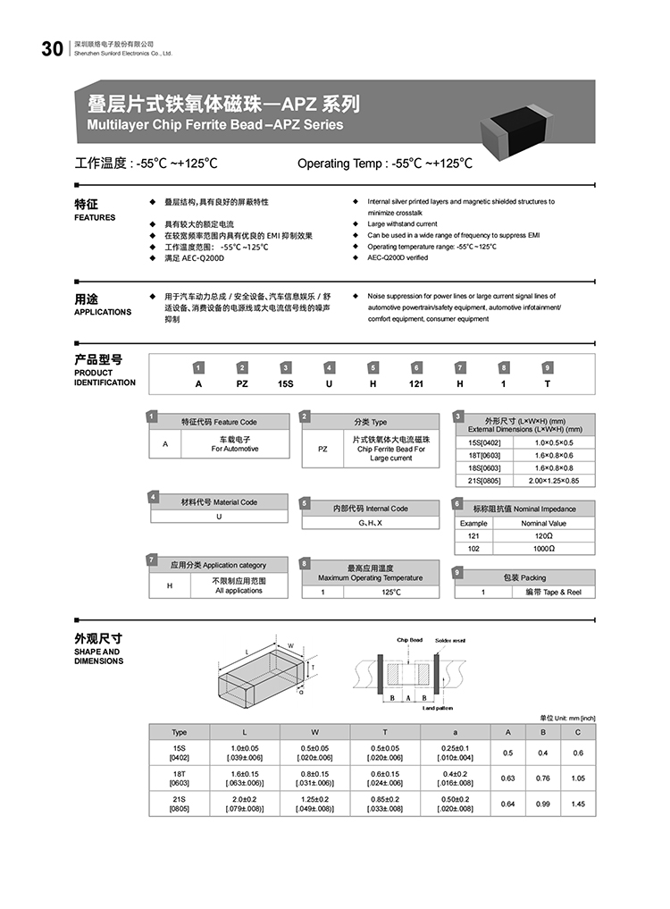 叠层片式铁氧体磁珠一APZ 系列